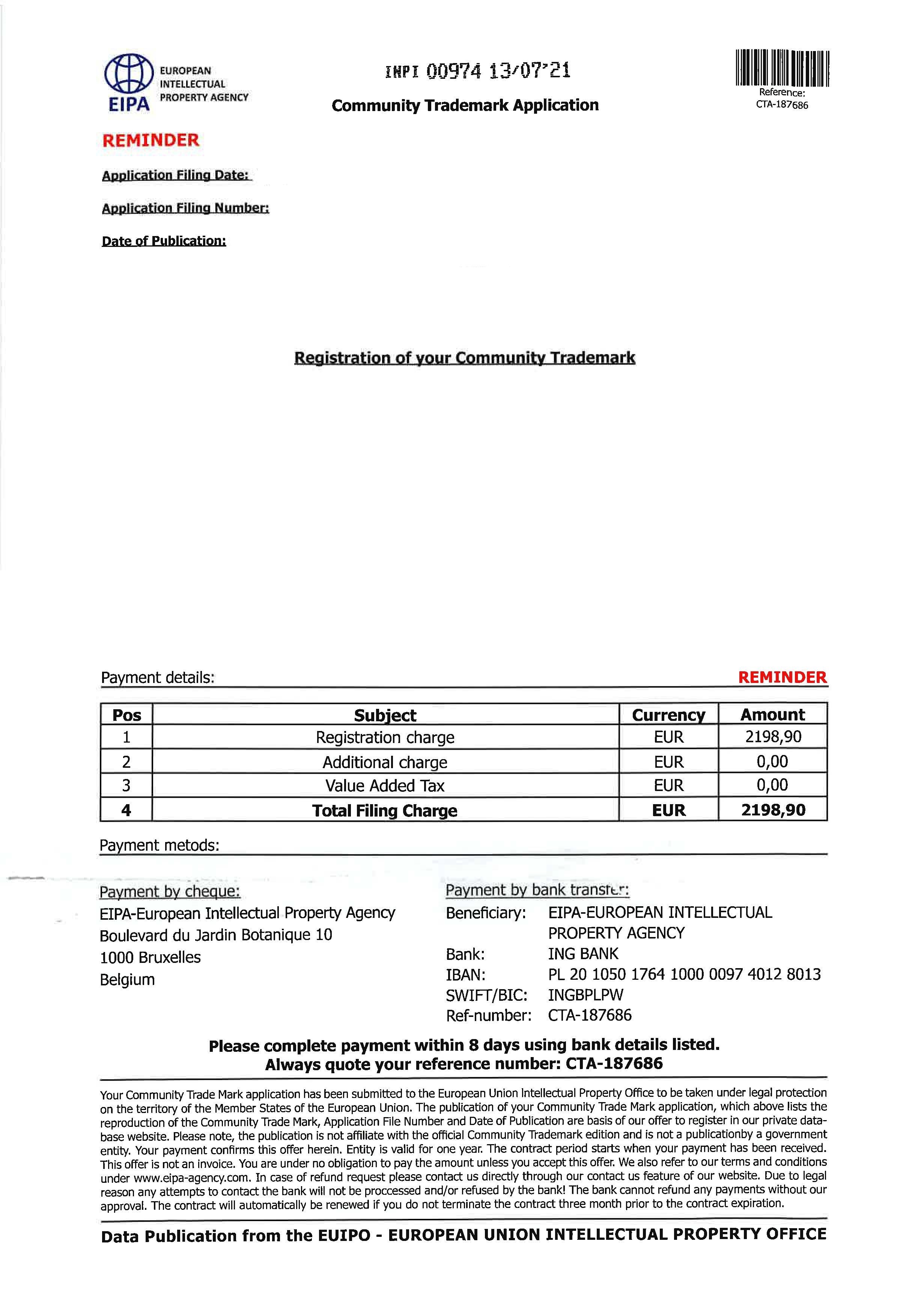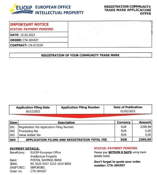 Consulte também o Manual de procedimentos para os utilizadores do sistema de propriedade intelectual para lidar com solicitações não oficiais de pagamento (EUIPO/EUROPOL)